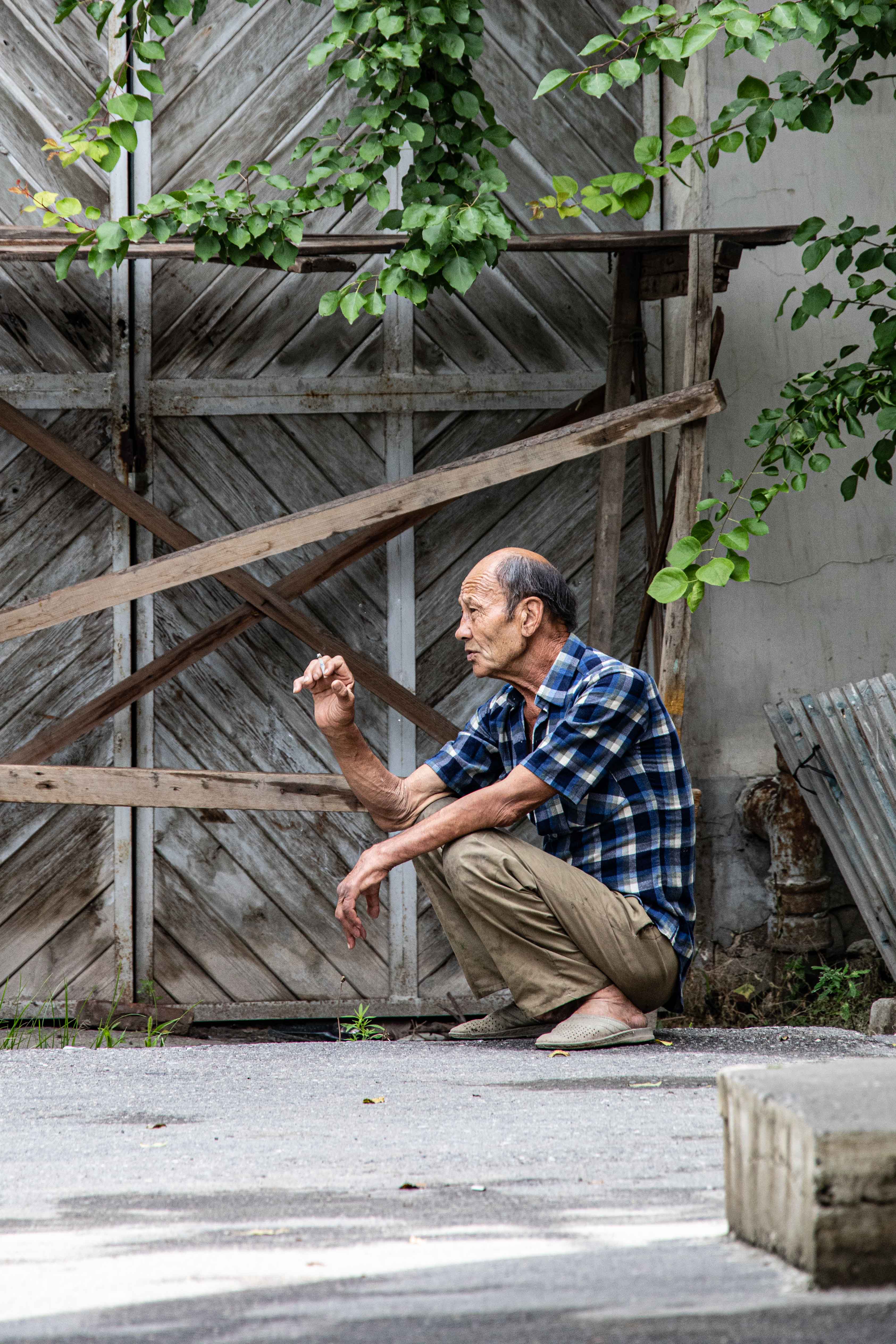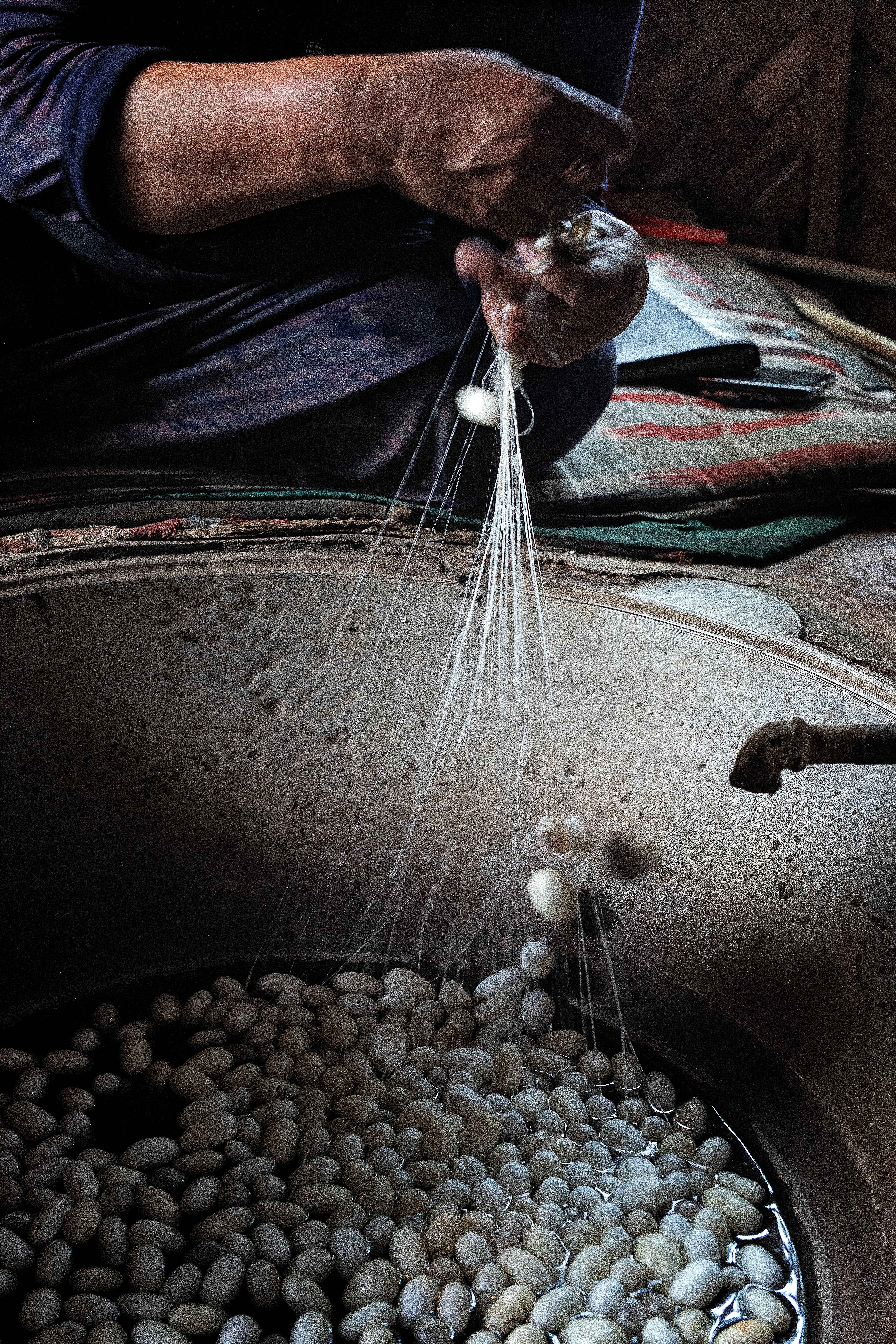 Not sure what he is wearing but he was interested in us.Working…Up close workingCeilings are tricky and I am still working on the best way to shoot them.Work in progressCaught in the rainCooking is serious business, well serious-ishThe region is famous for ceramics and silkMaking a vasePulling silkThe Bifrost! Or silk thread, you choose.At work.Taking a break.For Emily!